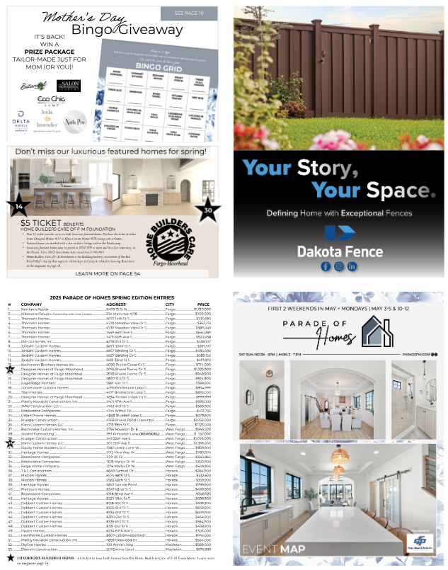 The Spring and Fall Parade of Homes offers a scattered-site tour of homes throughout the F-M area. The events welcome renovated homes and Downtown Living, all under the “Parade of Homes” brand. These entries will cover a wide variety of price ranges, including options for those age 55 and better, first-time buyers, people needing more space and those wanting to downsize.